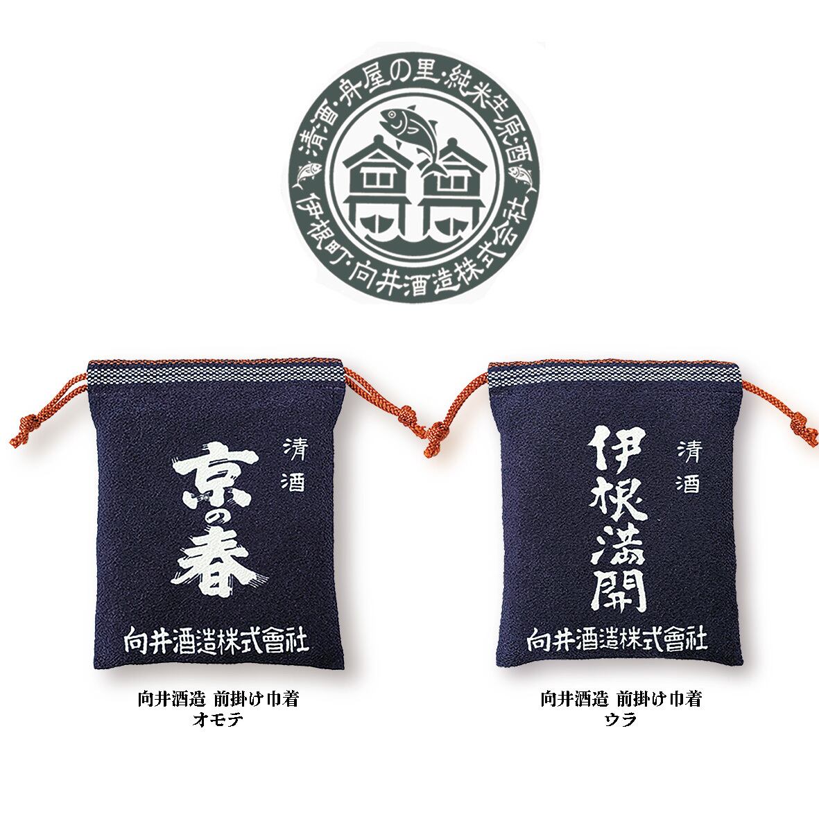 伊根のお土産にも人気の向井酒造特製「前掛け」を巾着にしました!