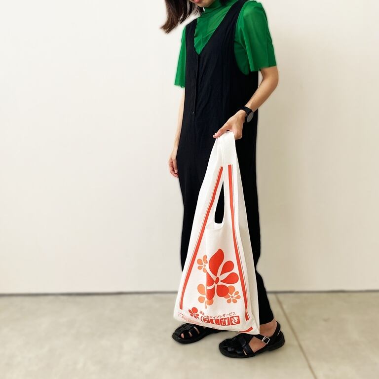 通常のレジ袋サイズより少し持ち手を長くし、肩からもかけやすくなっています。